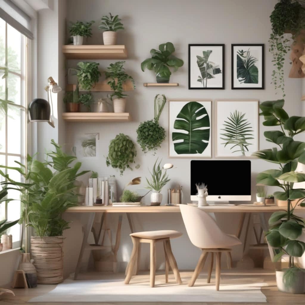Doğal unsurlar, çalışma ortamınızı canlandırmak için harika bir yoldur. Bitkiler, hem estetik hem de ruh halinizi olumlu etkileyecek bir etkiye sahiptir. Özellikle düşük bakım gerektiren saksı bitkileri (sukulentler gibi) kullanarak, ofis alanınıza canlılık katabilirsiniz.